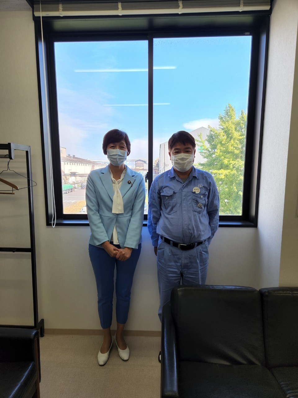 日本冶金工業の広大な工場に労組の福井委員長を表敬。
