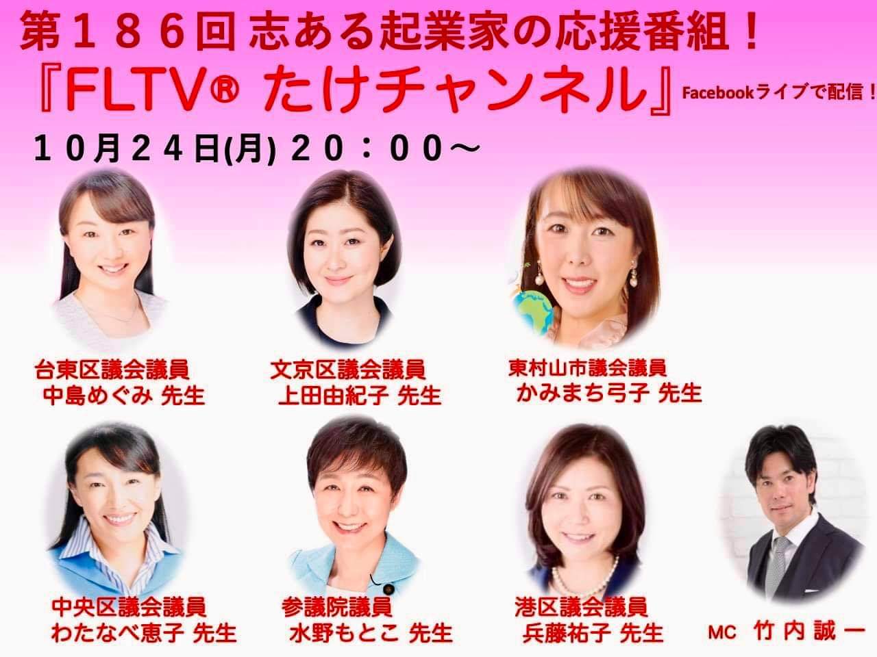 今晩24日20:00~21:30に出演!友人の竹内さん主催『志ある起業家応援』番組第186回。議員対談としては第五弾。約一年前に候補者として対談させていただいた女性自治体議員の皆さまと、参議院議員となり改めて国政報告をかねて対談。是非ご覧ください。