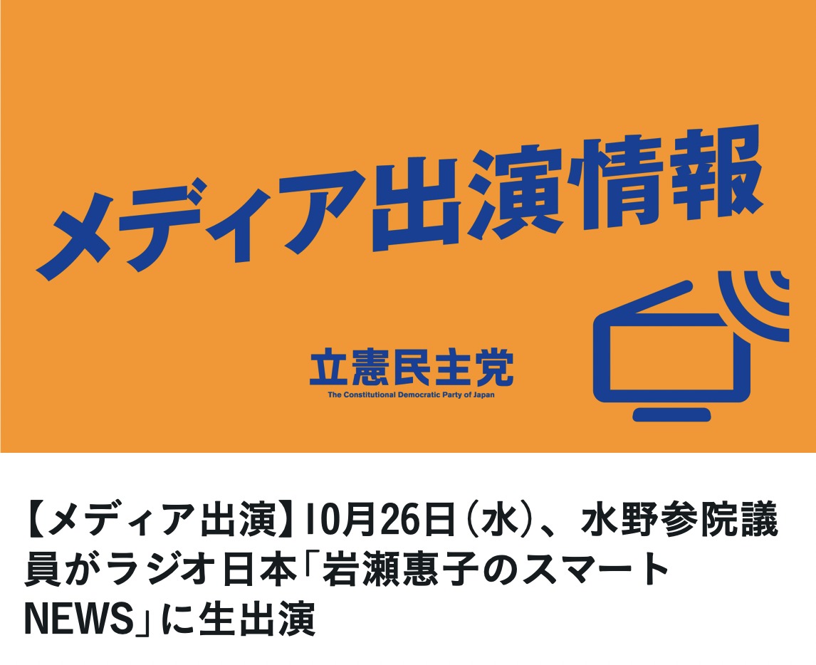 岩瀬恵子のスマートNEWSラジオ日本10月26日(水)7:17~8:00に出演させていただきます。JAXAでの28年の仕事&育児から体当たりの出馬、国政のリアル、是非聴いてくださいね?