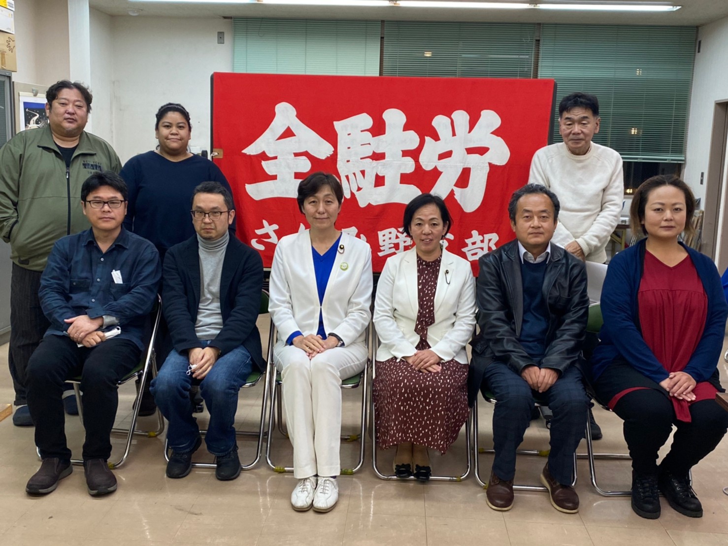 全駐労さがみ野支部にて、京島けいこ県議と共に、防衛省に雇用され米軍基地に派遣され働くお仲間の労働課題や改善のための政策提言の勉強会。 日米地位協定の構造的課題に加え、協定上も日本法が適用なのに超法規的?憲法違反の驚きの実態。通常国会で政府に問いただすべく、鋭意準備します!